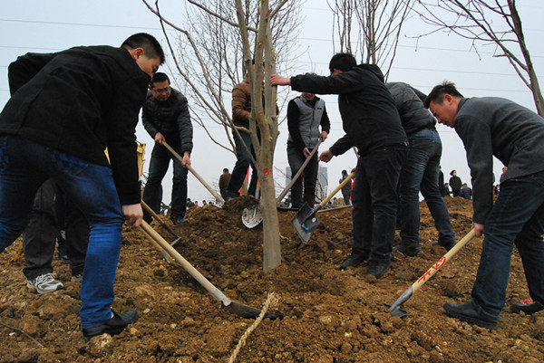 又到了一年植树时节,为积极响应市委、市政府关于“创建全国绿化模范市”的工作目标,加快生态环境和宜居城市建设步伐,3月12日,公司职工们在书记杜洋坚的带领下,参加了住建局组织的义务植树活动。 在北辛植物园现场,彩旗飘扬,人声鼎沸,现场呈现一派热火朝天的劳动景象。刚到现场,笔者就看到职工三五人一组分头干了起来,“一、二、三起”抬树的男同志们喊着号子一齐发力,将土球直径足有70公分的白玉兰树逐一抬进树坑,“刺啦一声”有的同志竟因用力过猛将衣服撕出了一道长口,虽如此,他们依然干劲十足,将每棵树“安排到位”。树一进坑,女同志们就开始往坑内填土,并将土踩实,完成之后再浇上定根水,确保所栽树木的成活率。合理分工、齐心协力,不到2小时,现场区域内的玉兰、垂柳等树就被栽种完毕。